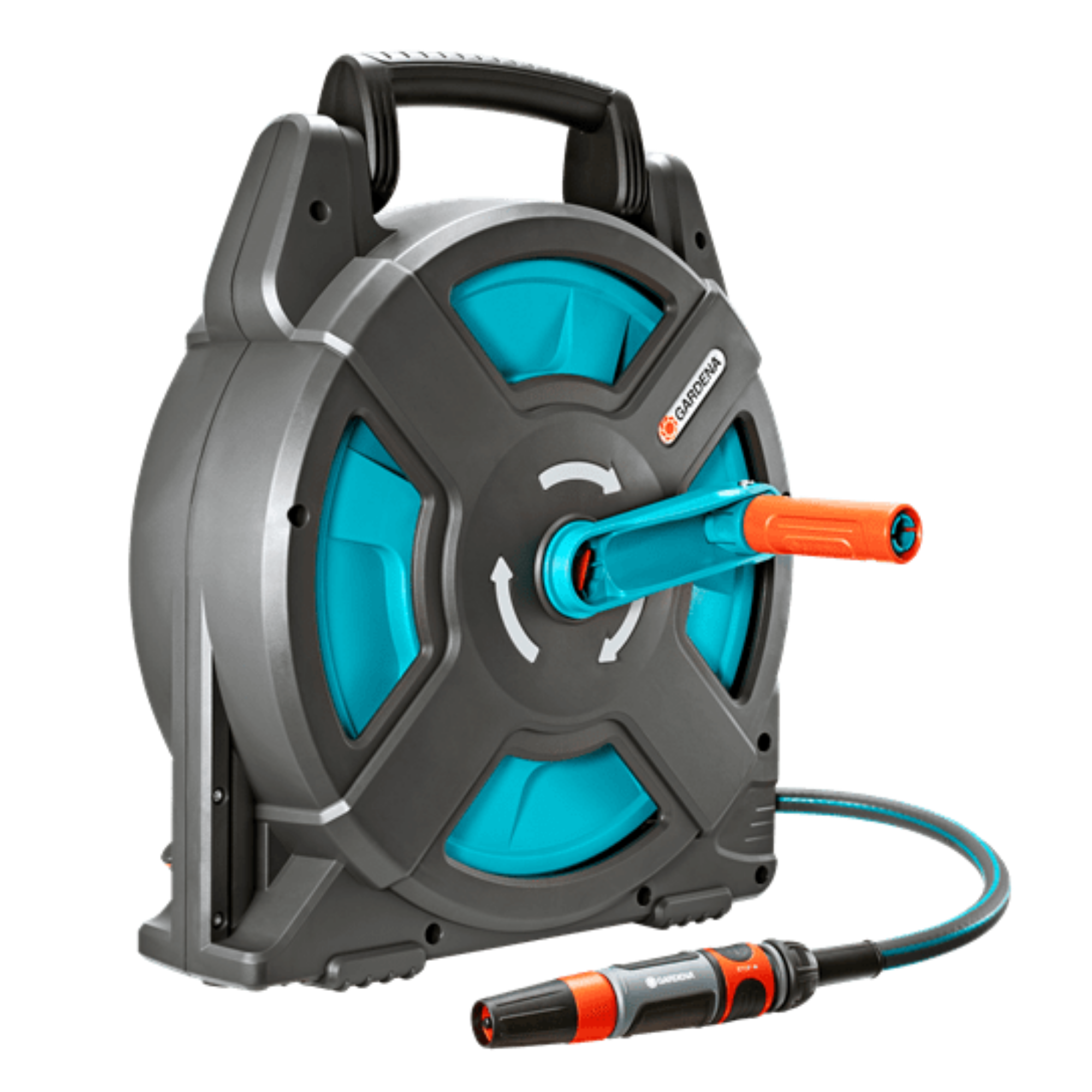 The Hose Box 15 includes a hose, all required GARDENA System Fittings and an Adjustable Spray Nozzle. Always ready-to-use.