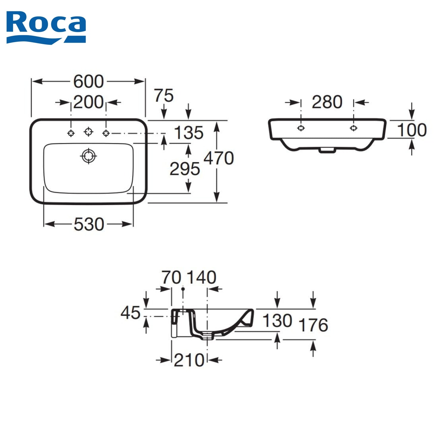 ROCA A32751B000 Dama Senso 掛牆面盆 600x470x176mm 白色