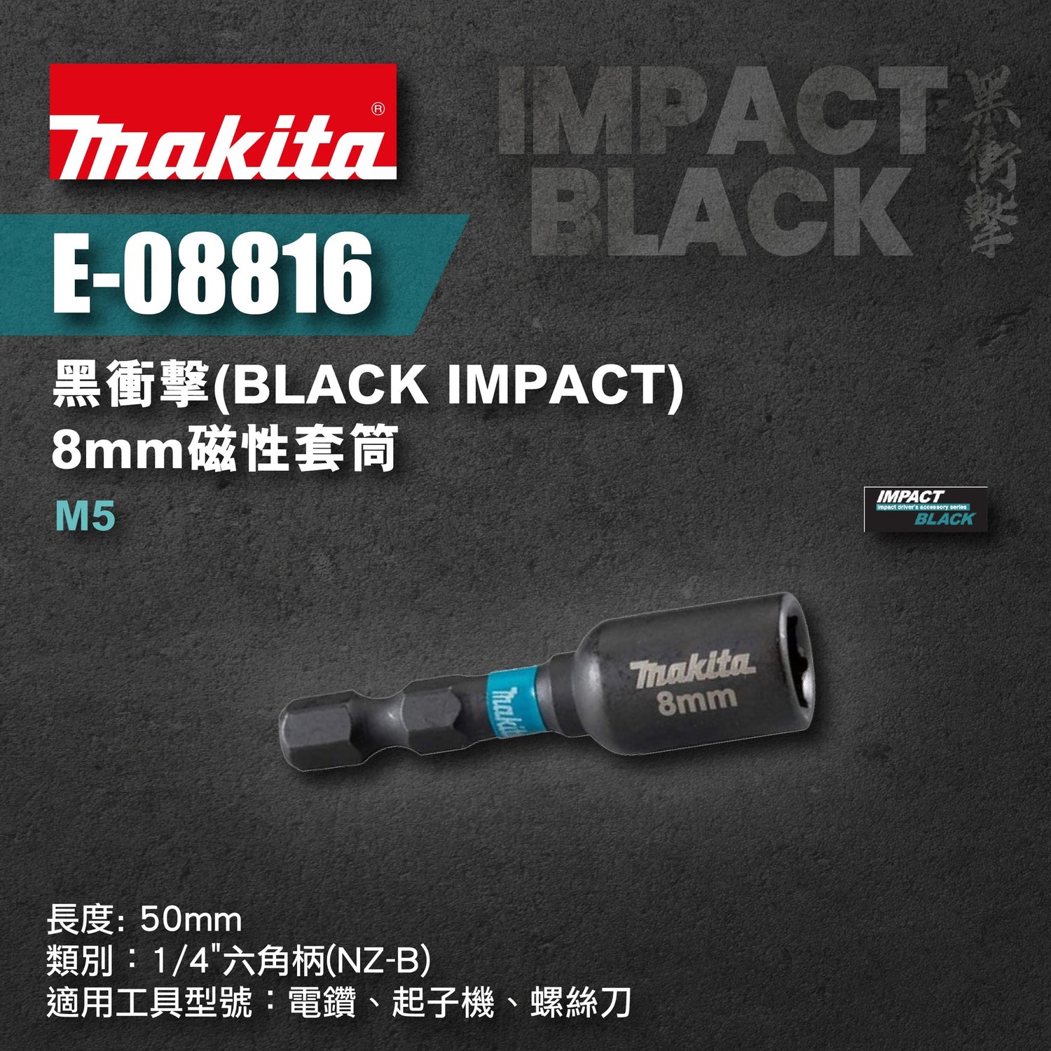 Makita 牧田 E-08816 黑衝擊Black Impact 8mm M5磁性套筒