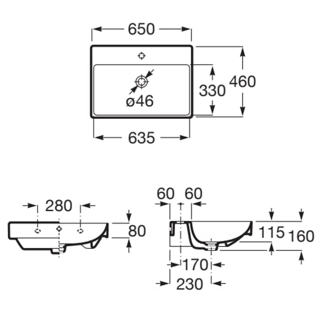 ROCA A327687000 ONA 掛牆面盆 650x460x160mm 白色